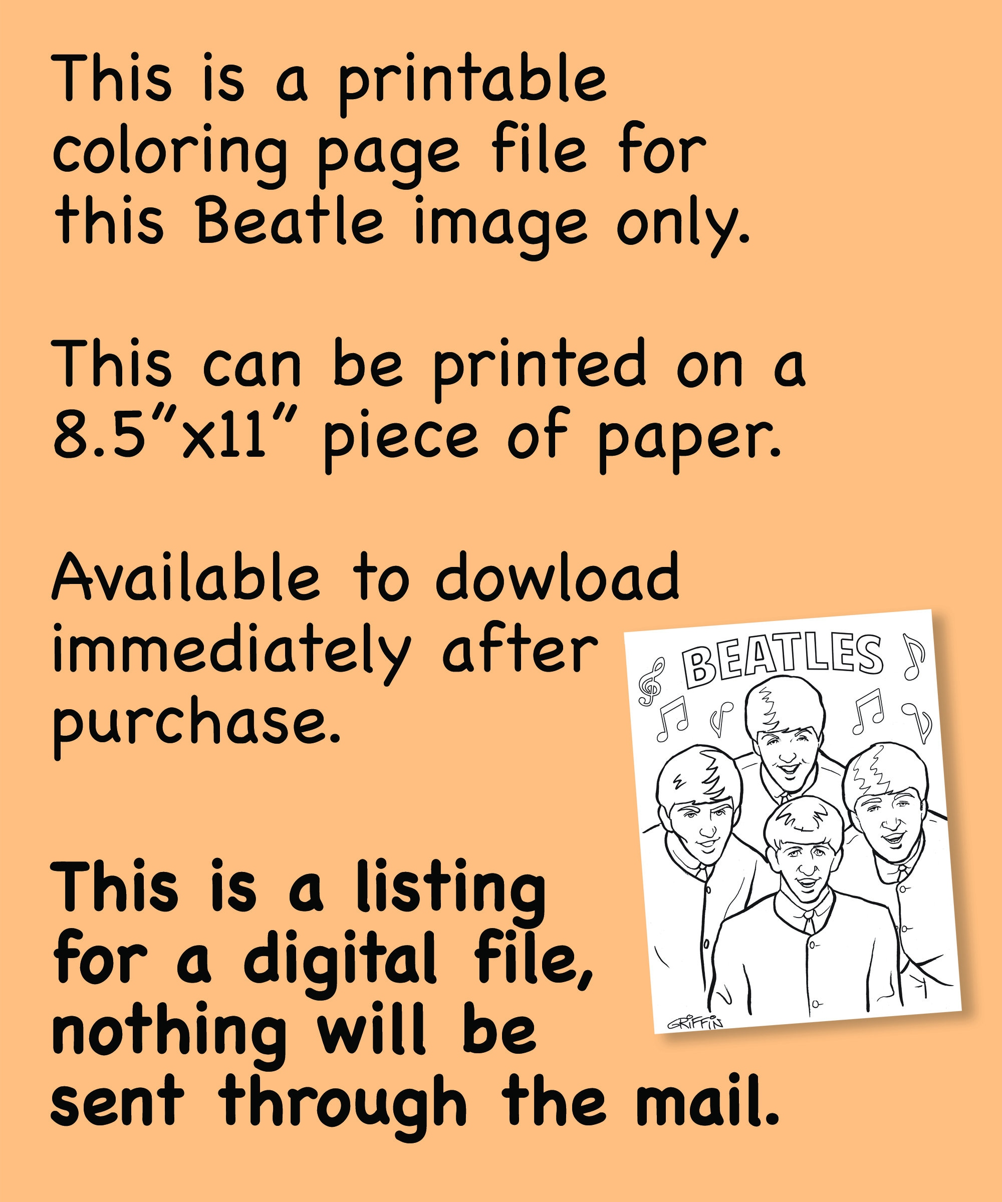 Beatles Coloring Page Digital Download Hand Drawn Coloring Etsy